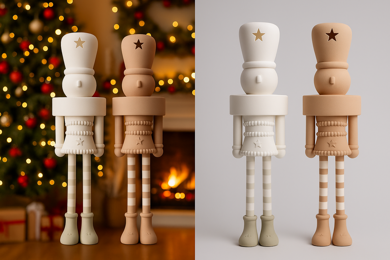 Schiaccianoci decorativo stampato in 3D in PLA opaco, ispirato ai classici personaggi natalizi. Perfetto da esporre accanto all'albero, sul camino o su una consolle per creare un angolo caldo e scenografico.