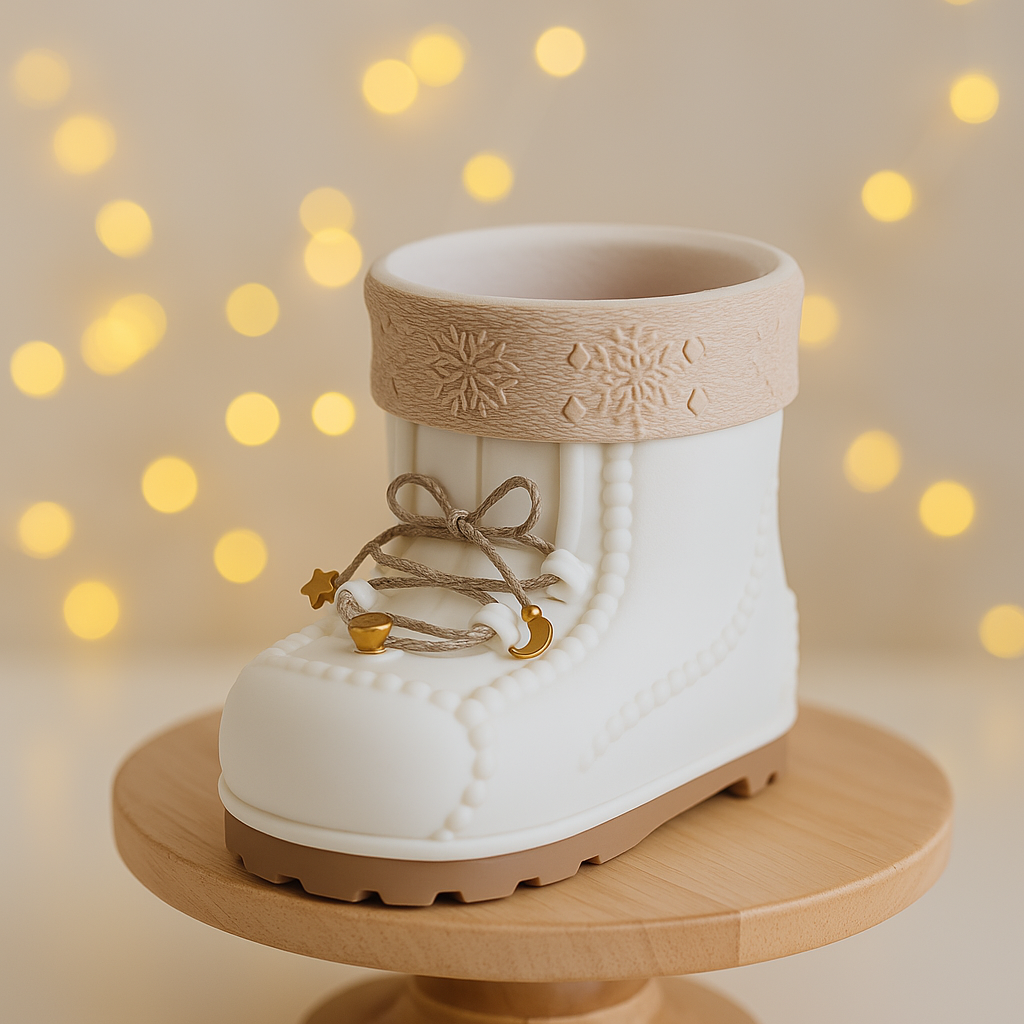Questo set di stivali natalizi è realizzato interamente nel nostro laboratorio con stampa 3D di alta qualità e finito a mano nei dettagli. Lo stivale grande e il mini stivale si abbinano tra loro come “mamma & baby boots”, mentre la suola con la scritta “Santa was here” racconta la storia: Babbo Natale è passato davvero da lì.